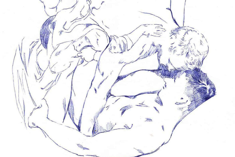 pen on paper, A4, 2020 by Michal Rutz The work melts two scenes together: a moment of embrace from Pontormo’s The Visitation and a snapshot of anal sex from gay porn. This bold juxtaposition reveals…