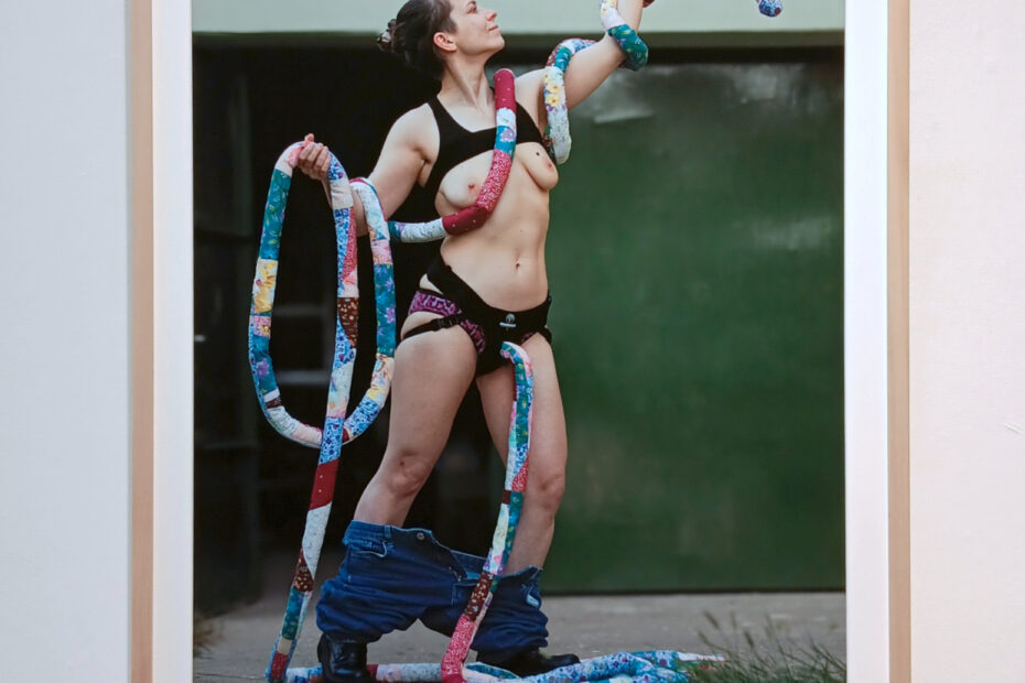 by Tiina Sööt This self-portrait critiques cultural obsessions with the phallus as a symbol of power and male authority. The 10-meter-long patchwork penis, rephrames the phallus as something anyone can create, wear and display. It…