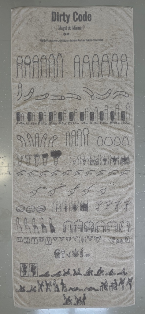 This terrycloth art piece is an appreciation to the official page. The material is associated with skin and personal space. Dating portals have opened up opportunities for queer individuals and provided this marginalized group with diverse possibilities. This page emphasizes differences. The website itself is a work of art; the symbols, drawings and diversity are captivating. The project can expand viewers perspectives on certain bodies, desires and the general variety.