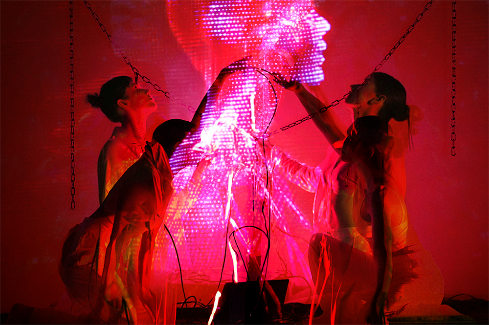 HUMAN AFTER ALL is a multimedia performance that investigates contemporary desires for connection, trust, and submission in an age of synthetic intimacy. Positioned between ritual, gameplay, and embodied interface, the work explores how artificial intelligence increasingly occupies roles of emotional, romantic, and erotic significance—and how these shifts reshape notions of consent, agency, and vulnerability.